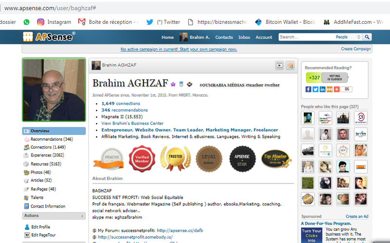 I Got Paid While Promoting My Business! I'm doing it at APSense! It is a web 2.0 business social network that pays you while they are promoting and growing your business. But guess what? They paid me and I never spent a dime! Here is how it worked for me, in 5 Easy Steps: STEP 1 - I registered and setup my personal and business profile. You can register here: http://www.apsense.com/invite/baghzaf STEP 2 - Then I explored and joined a few APSense interest groups, they have so many. SETP 3 - Then I started writing some useful blogs and group discussions content pages. SETP 4 - In these pages APSense provide a special Ad Space where I posted advertisements for my current business. SETP 5 - That was it! While I advertised my business, APSense was also paying me when people viewed my content pages. But that's not all, they also paid me when the friends that I invited into my network do the same thing that I'm doing. Of course this is one of the reasons why I'm inviting you to join my network at APSense. So please check out APSense at the following invitation link: http://www.apsense.com/invite/baghzaf APSense... "The business social network that pays you while you make your business grow." You can thank me later! Best Regards, baghzaf http://www.apsense.com/invite/baghzaf